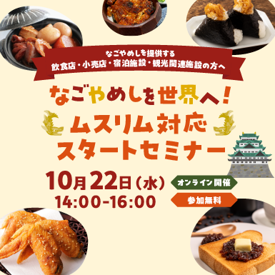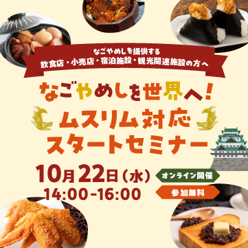 「なごやめし普及促進協議会」では、名古屋特有の食文化「なごやめし※」を国籍、文化、宗教に関わらず、すべての方に楽しんでいただくことを目的に、ムスリム・ヴィーガン・ベジタリアン対応の基本事項や実践的なノウハウの普及事業を推進しています。